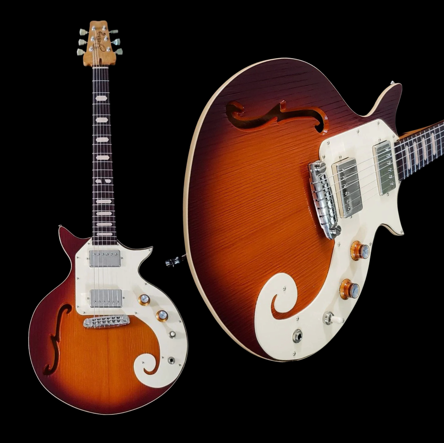Outside of our aesthetics, we bring innovative functionality to an instrument approaching 100 years old. Whether its our neck pocket, our neck shape, or the versatility brought by our interchangeable pickguards, the Dekka platform was built for function - as well as form.